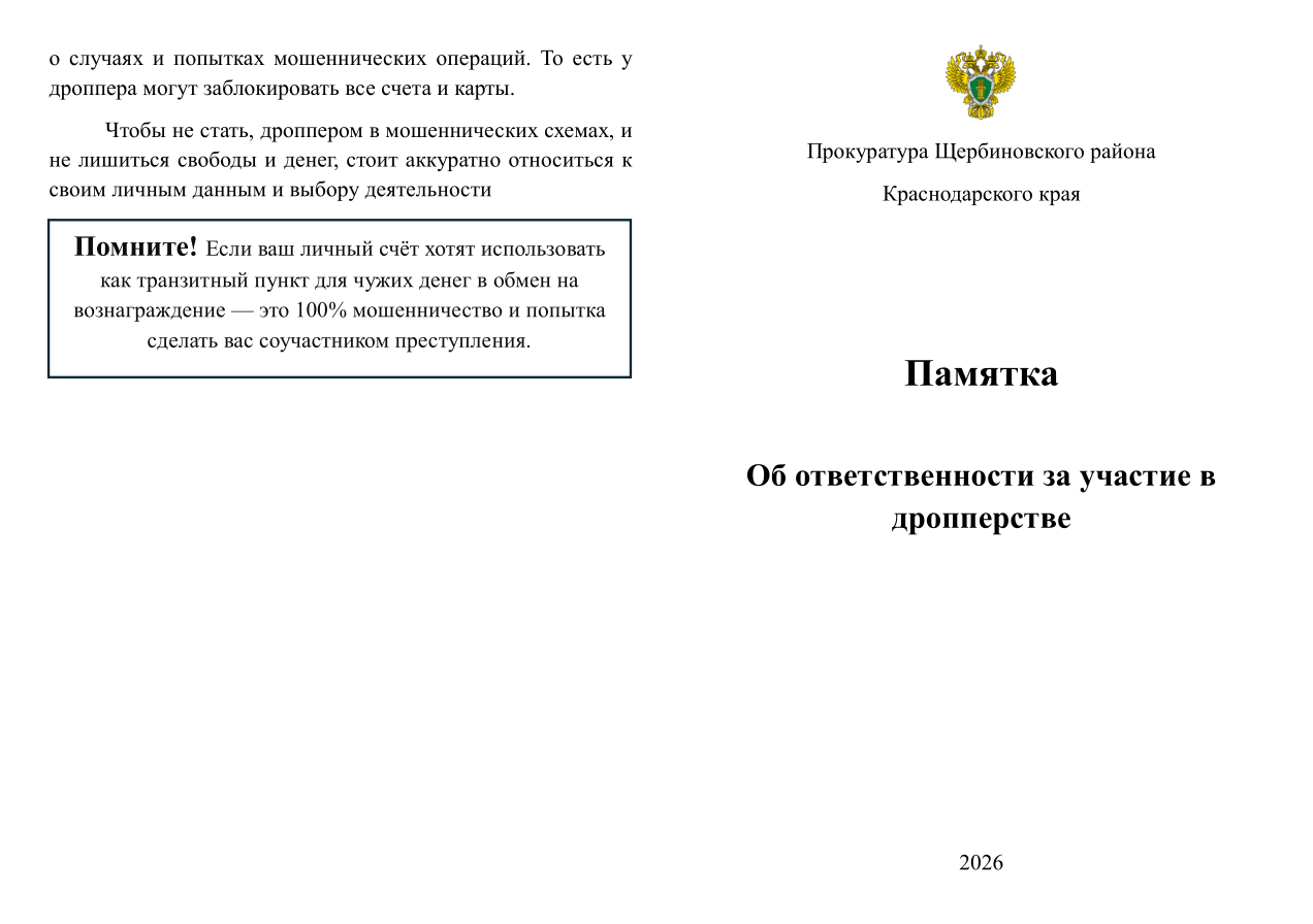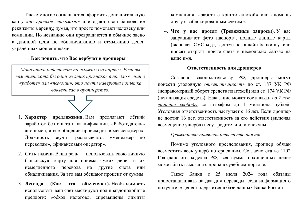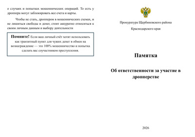 Памятка об ответственности за участие в дропперстве